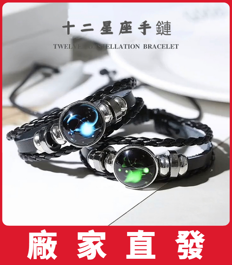 25分鐘前夜光手鍊十二星座皮繩手串學生潮人情侶飾品首飾女韓版時尚帥氣 - 【夜光手鍊十二星座 三入组】